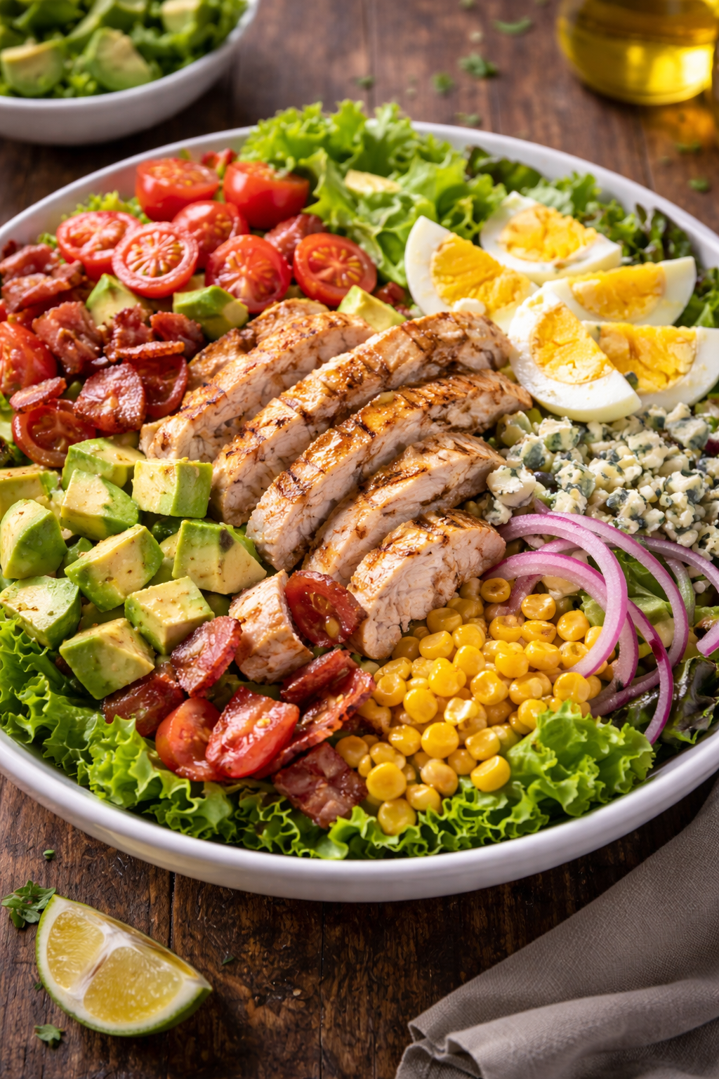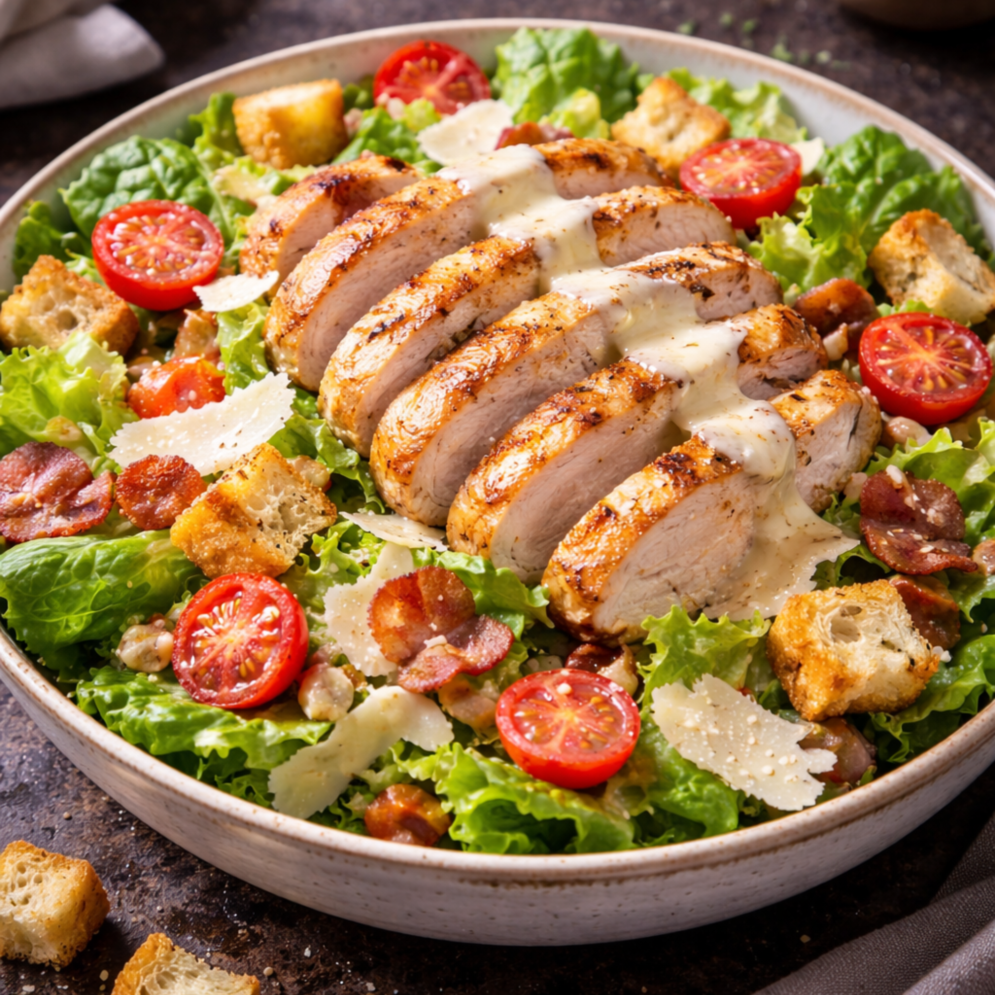 SALADE – TOMATES – OIGNONS – POULET GRILLÉ – POIVRONS